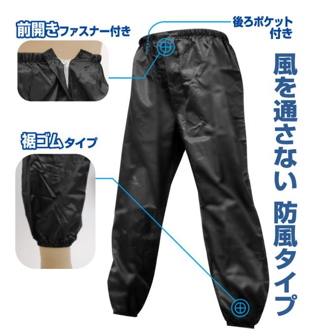 足首部分に裾ゴム採用で、風やほこりの侵入を防ぎます!