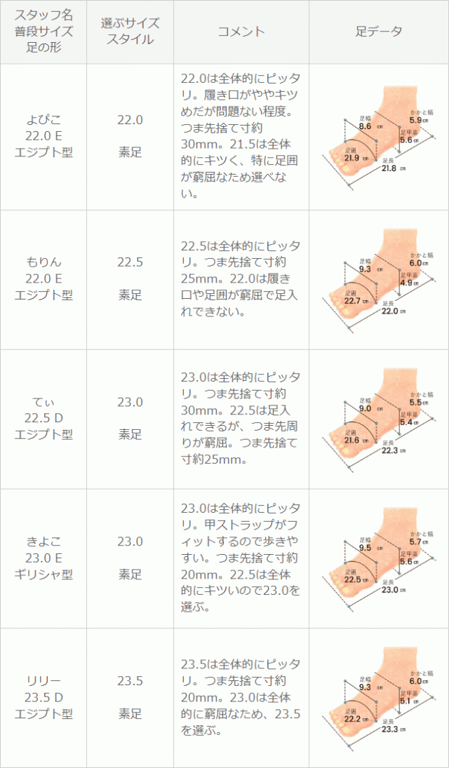 ※足の形には個人差があります。スタッフ試着感想は参考程度にお考え下さい。