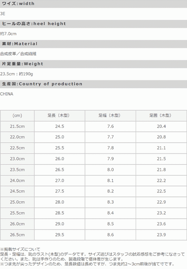 ※掲載サイズは、靴のラスト(木型)のデータです。