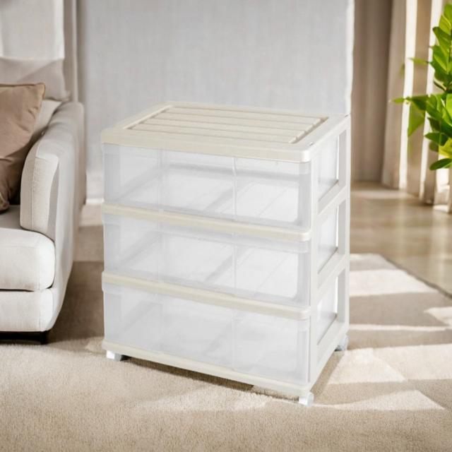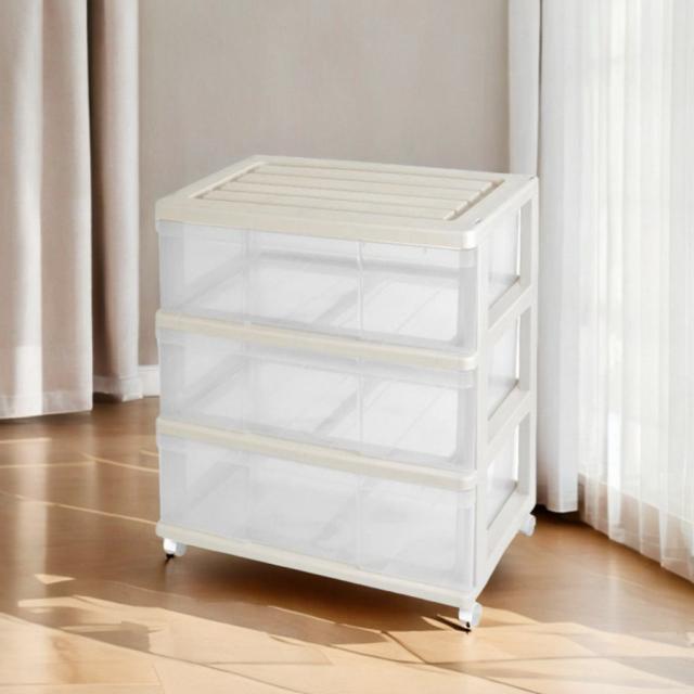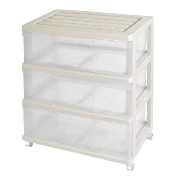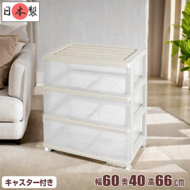 収納ケース 引き出し ワイド チェスト プラスチック 3段 幅60cm おしゃれ ベージュ/クリア 日本製 送料無料