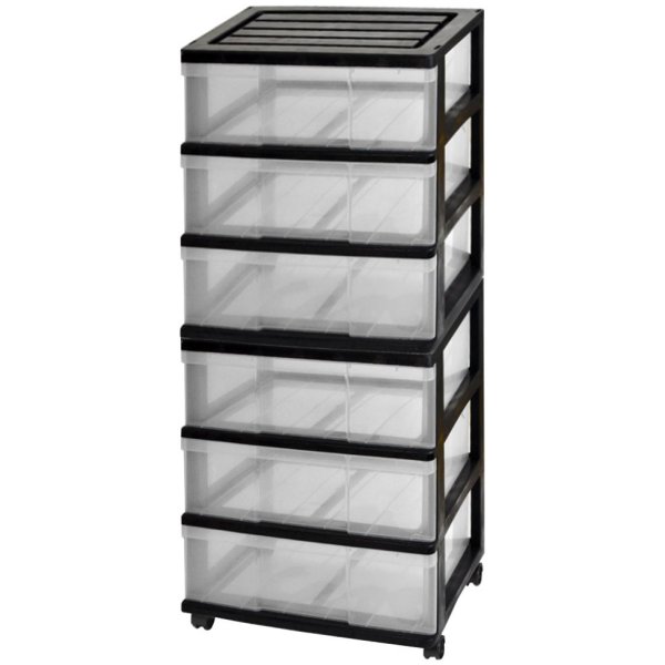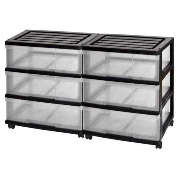 収納ボックス 収納ケース 引き出し ワイド チェスト プラスチック 3段 2個組 幅60cm おしゃれ ブラック/クリア 送料無料【自社製造】
