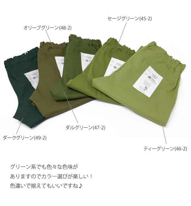 ウエストは伸びのいいゴムを使いイージー仕様に仕立ててあります。アンクル丈で裾に向かってきれいなテーパードラインに。美脚効果のあるシルエットで、カジュアルにもマニッシュにもキレイにまとまる、万能型のイージーパンツとなっています。