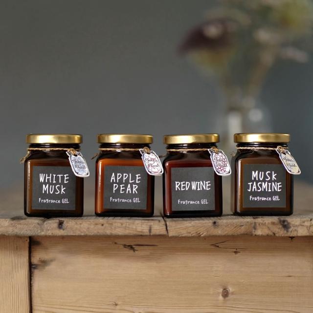 【リニューアル】ジョンズブレンド フレグランスジェル ホワイトムスク ブラウンのガラスの瓶 ジャム瓶入り 置き型エアーフレッシュナー Johns Blend カーフレグランス oa-jon-86 芳香剤 香水 アップルペアー レッドワイン ムスクジャスミン おしゃれ アーベン 2025年