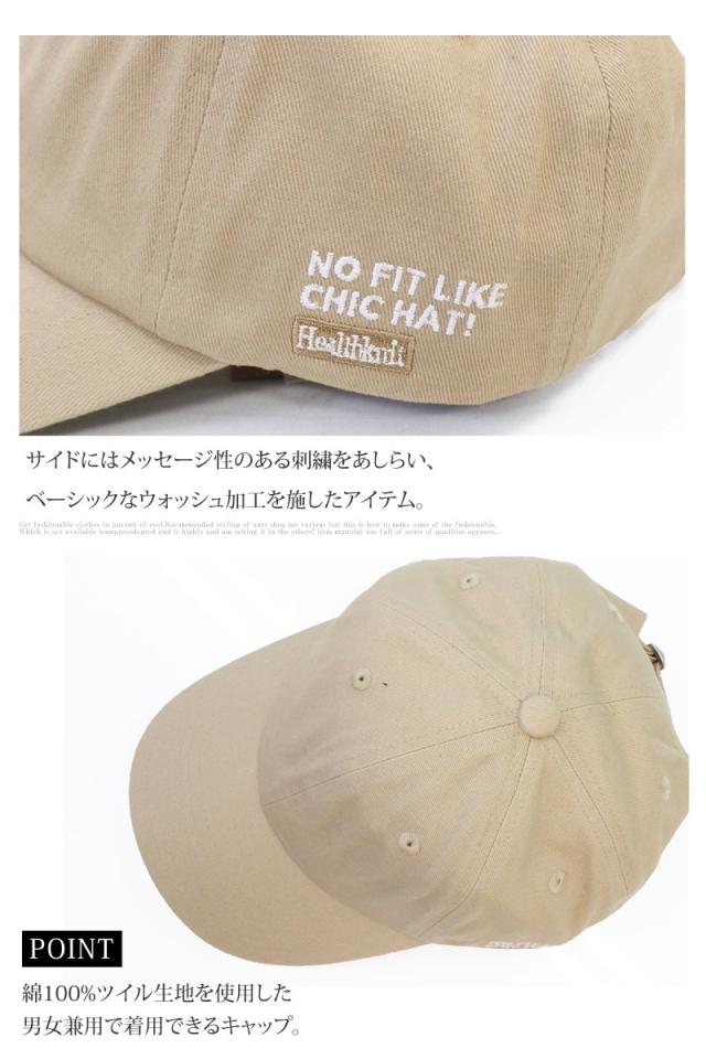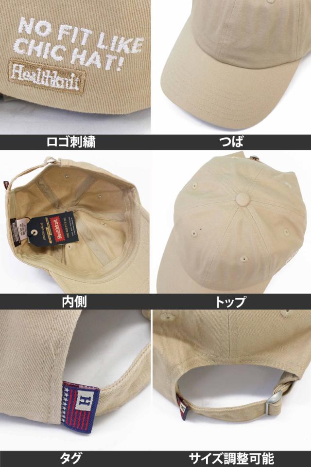 サイドの部分にHealthknitのロゴ入り!フロントのペナント刺繍がアクセントになったツイル無地ローキャップです。
