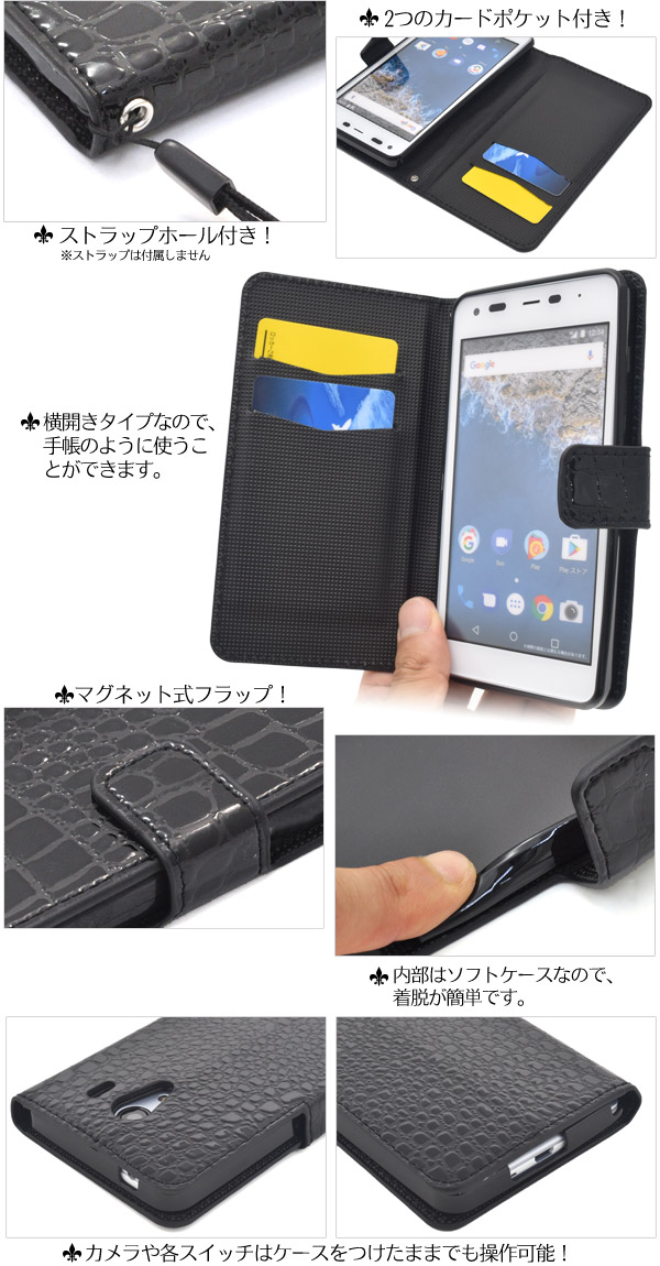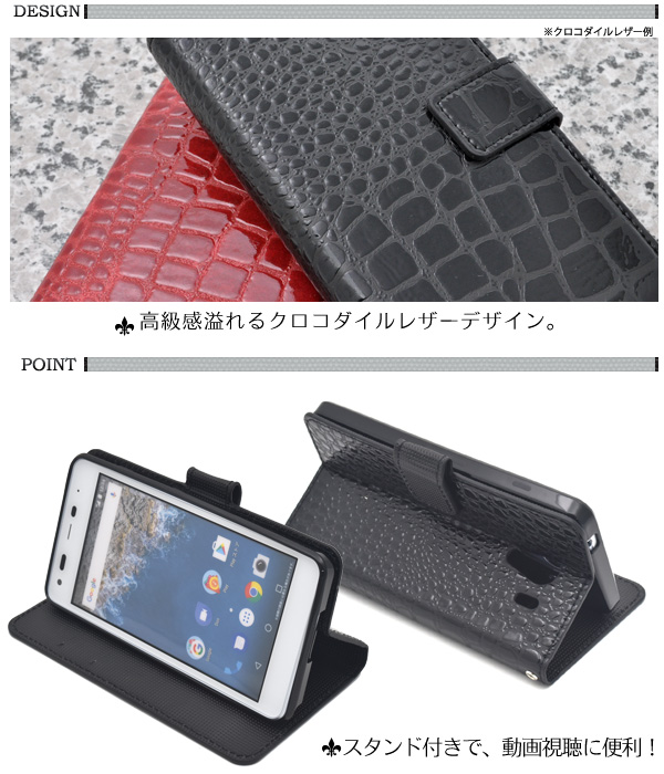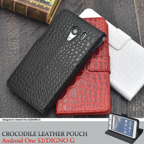 Android One S2 Y mobile DIGNO G SoftBank 用クロコダイル レザーデザイン ケースポーチ アンドロイド ワン S2 ディグノG用 手帳型