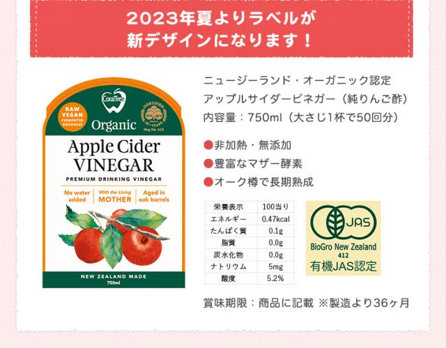 ニュージーランドオーガニック認定!ヘルシーな「飲む純りんご酢」アップルサイダービネガー