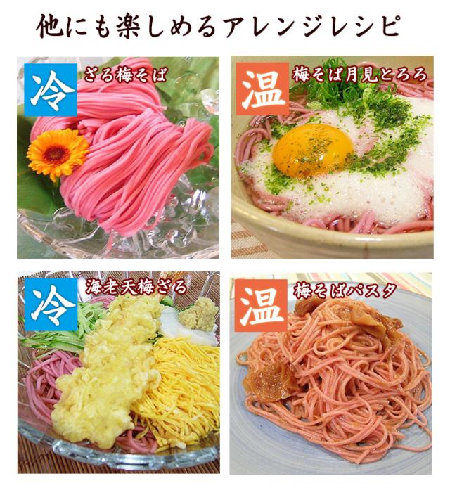 ●原材料: ・麺【小麦粉、そば粉、食塩、梅粉末/コチニール色素、炭酸ナトリウム、香料、(一部に小麦、そばを含む)】