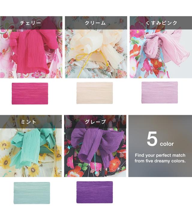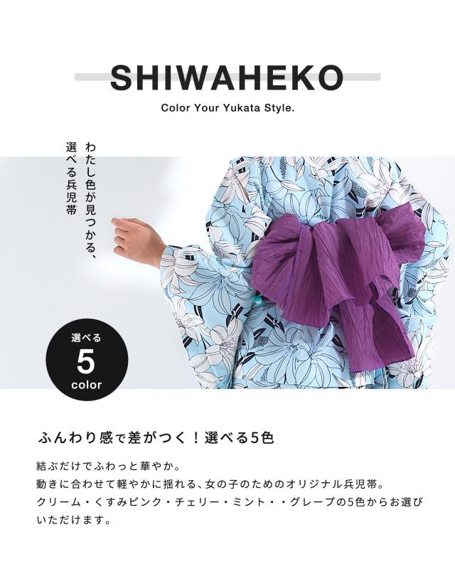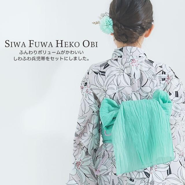くすみカラーの浴衣にベストマッチなしわふわ兵児帯をセット。ボリューム満点&アレンジ自在のしわへこで可愛さUP。大人顔負けのおしゃれ浴衣です!生地は吸湿性に優れた綿100%を使用しています。浴衣の可愛さを引き立てるしわふわ兵児帯がセット。モデル画像のままの雰囲気でお届けになります。兵児帯は6色から選べます。ベストなコーディネートをお楽しみ下さい。◆セット内容(3点セット)・浴衣・兵児帯 : 6色から選べます。・下駄◆浴衣サイズ(3サイズから選べます。)・110cm(適応 : 5-6才/110-120cm)・120cm(適応 : 7-8才/120-130cm)・130cm(適応 : 9-10才/130-140cm)◆浴衣スペック・素材:綿100%◆OPTION MENU・ピンポンマム・・・+299円〜セット出来ます。 ・着付けセット・・・2399円でセット出来ます。※ご注文後に手動で値段を訂正させて頂きます。 オプションの場合、ピンポンマムのお色はお任せとなります。