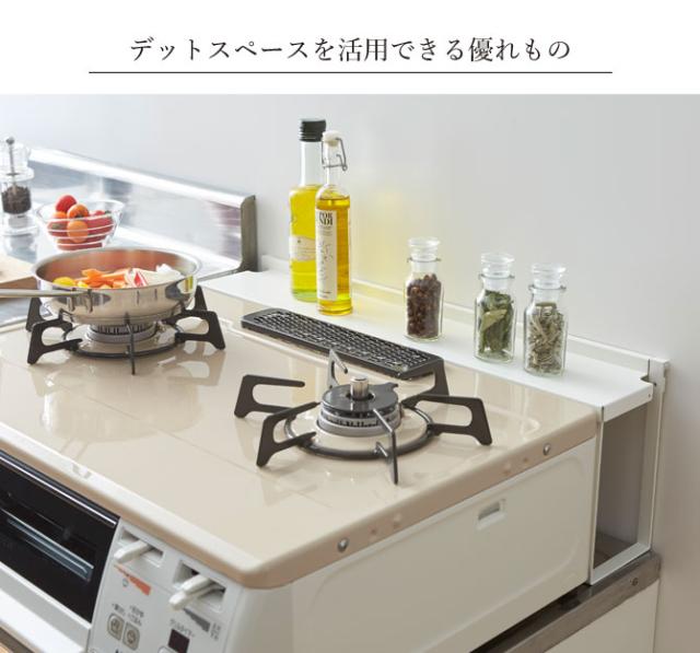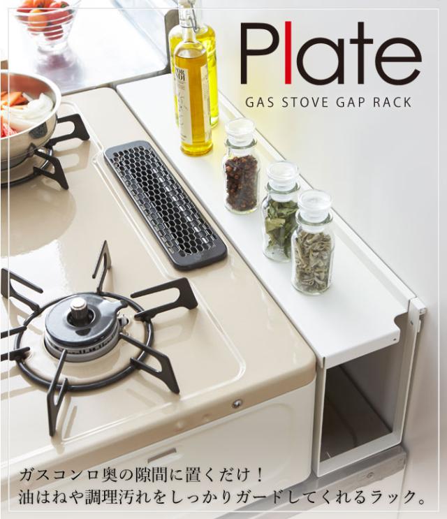 コンロ奥隙間ラック プレート 山崎実業 plate コンロ奥ラック コンロ奥 隙間 キッチンラック おしゃれ モノトーン ホワイト 3487