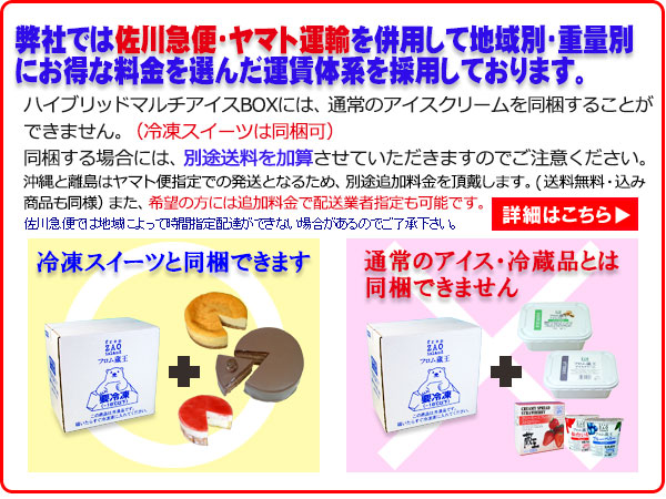 ※HybridマルチアイスBOXは冷凍スイーツと同梱可能ですが、通常のアイスクリームとは梱包状態が違うため同梱出来ません。(別途ヤマト便の送料が加算になります)