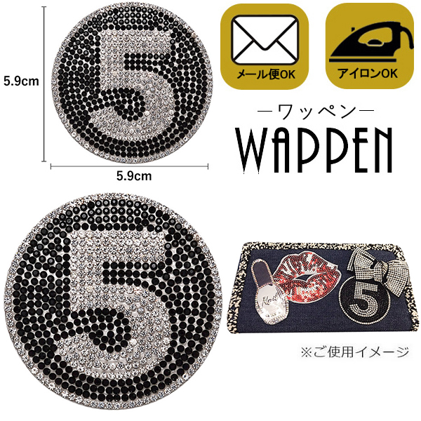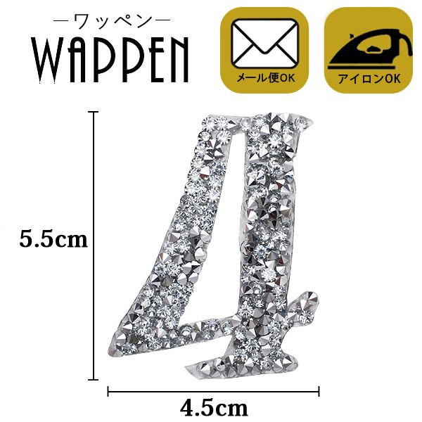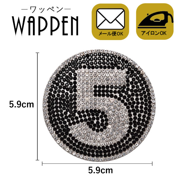 ワッペン 数字 ストーンワッペン アイロン接着 縦5.9cm×横5.9cm 数字 5 ナンバー 5クリア アップリケ母の日 プレゼント ギフト