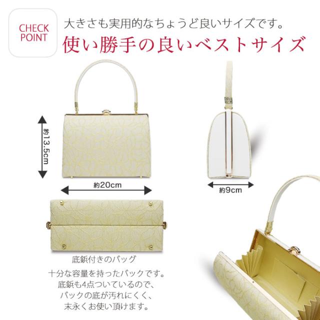 「まどか」ブランドの最高級帯地草履バッグセットシンプルで上品なデザインの草履バックセットです。高級仕立てで細部にわたってしっかりときれいな仕立てが施されています。バッグの表皮に高級な佐賀錦の生地を使用しています。留袖はもちろん、訪問着・振袖・付下げにもご使用頂けます。数に限りがございますので、ご注文はお早めにお願いします。(OPTIONメニュー)プラス798円で足袋をセット出来ます。※価格はご注文後に訂正させて頂きます。※!!ご注文後にプルダウンメニューにて選択して下さい。※価格はご注文後に訂正させて頂きます。----------------------------------●サイズ・バッグ 幅:約20cm 高さ:約13.5cm マチ:約9cm・草履 Sサイズ=長さ:約22cm 21cm〜23cmの方に適応します。 高さ:約6.2cm(カカト部分) Mサイズ=長さ:約23.5cm 22.5cm〜24.5cmの方に適応します。 高さ:約5.5cm(カカト部分) Lサイズ=長さ:約24.5cm 23.5cm〜25.5cmの方に適応します。 高さ:約5.5cm(カカト部分)
