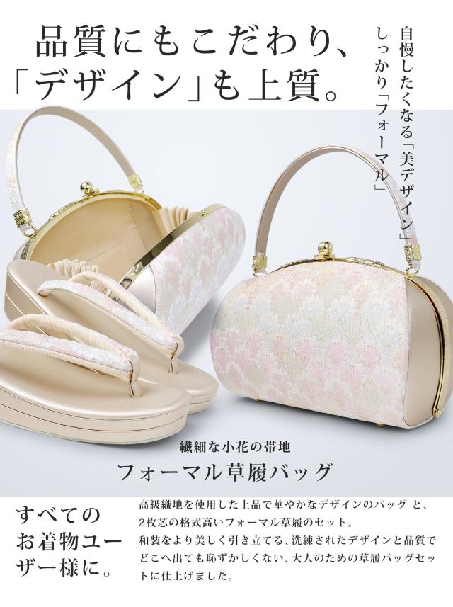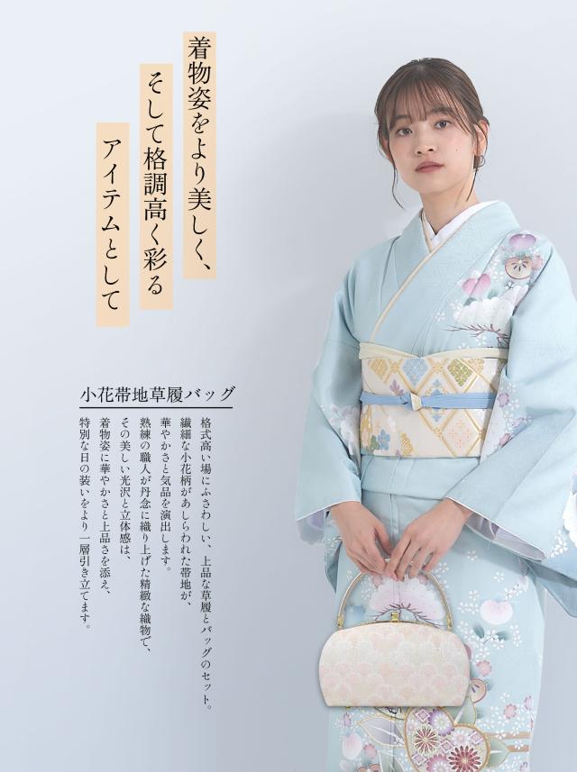 バッグと草履の鼻緒に高級な帯地を使用した草履バッグセットです。