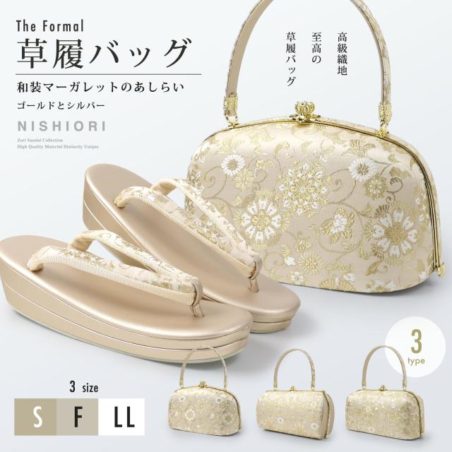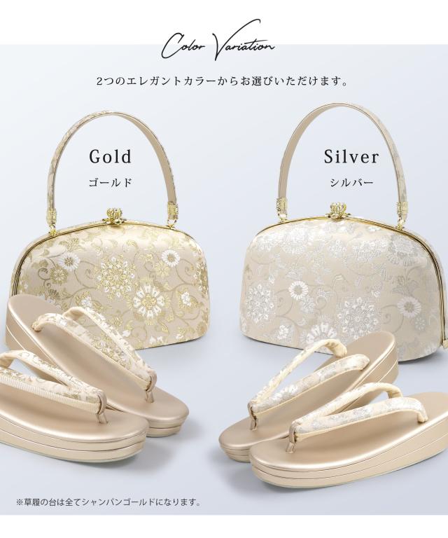 高級 唐草 草履 バッグ セット Sサイズ フリー LLサイズ 金 銀 2色カラバリ 3タイプ レディース 2枚芯 留袖 訪問着に最適 フリーサイズ