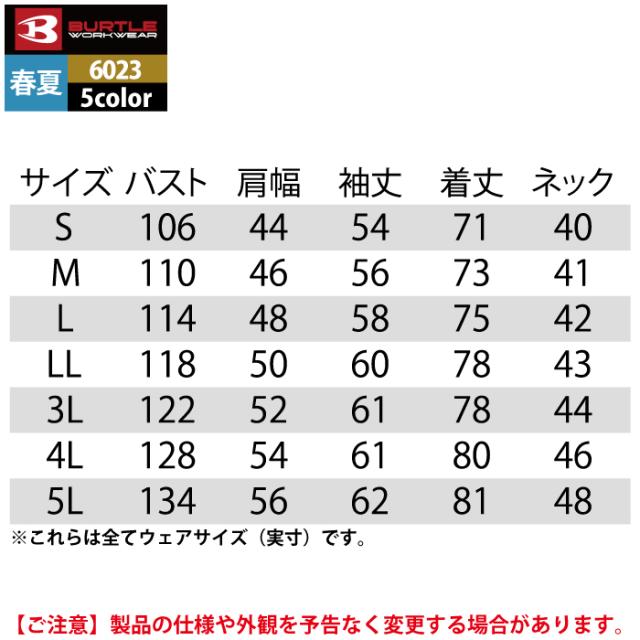 バートル BURTLE 作業着 6023 長袖シャツ S-LL かっこいい 作業服 春夏