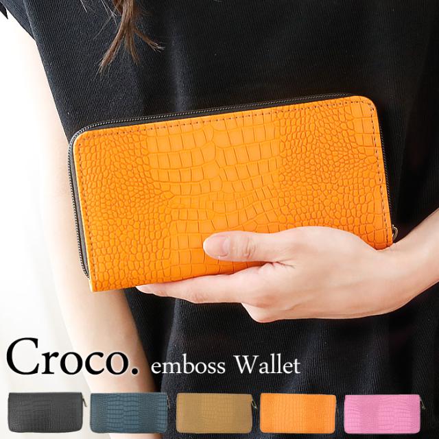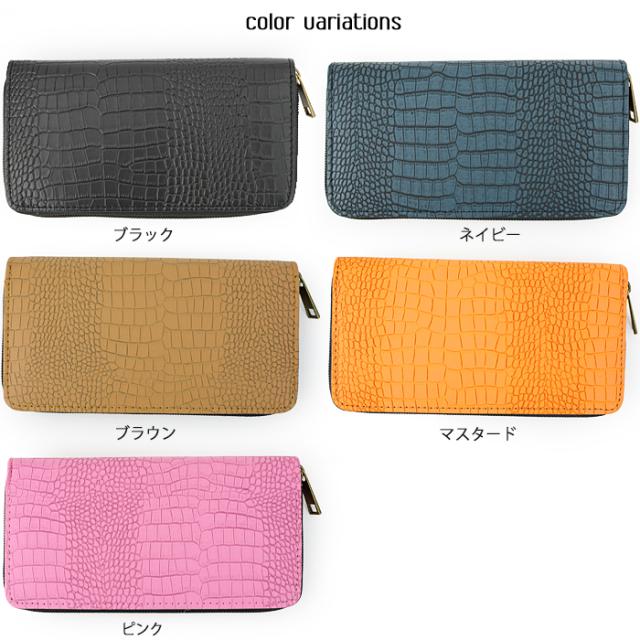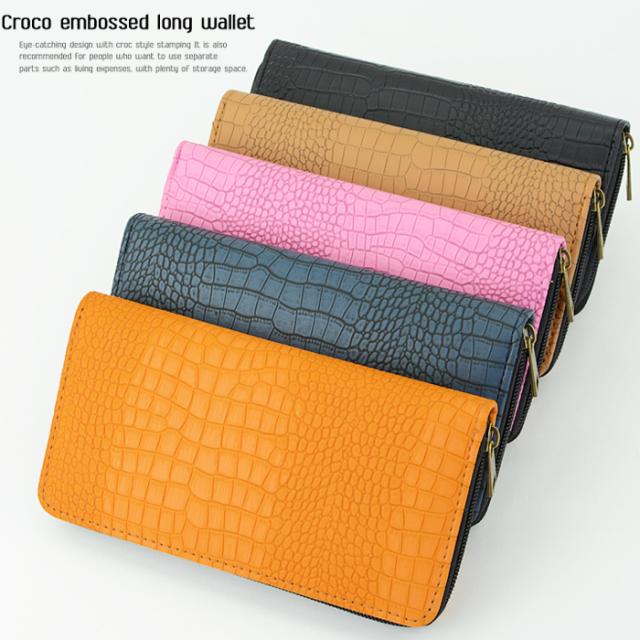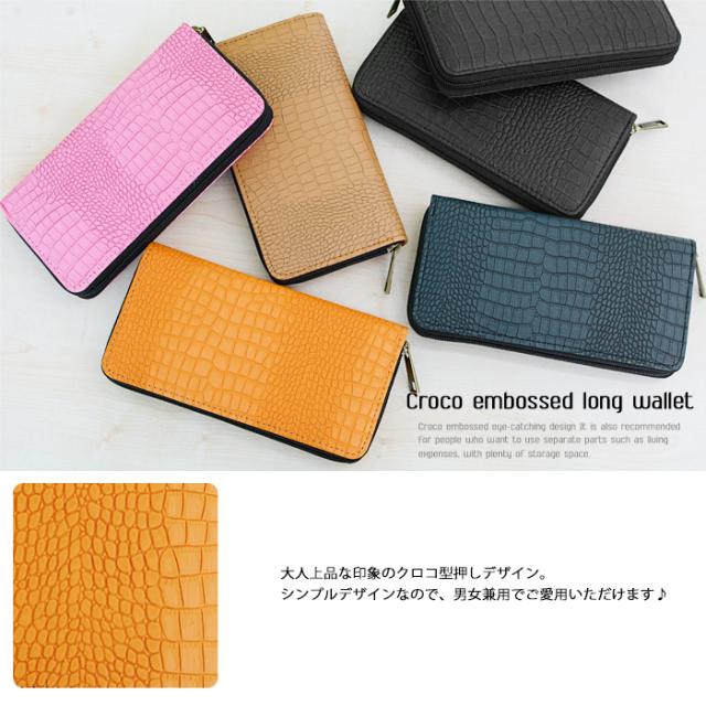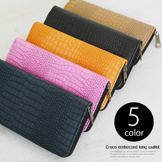 【2個買って1個無料】 長財布 レディース メンズ クロコ 型押し ラウンドファスナー 財布 おしゃれ Lulu&berry クロコ型押し 長財布 無地 シンプル かわいい 軽量 軽い カード 多収納 ジャバラ式 小銭入れ 女性 男性 プレゼント プチプラ (ar-KUROm)【メール便送料無料】