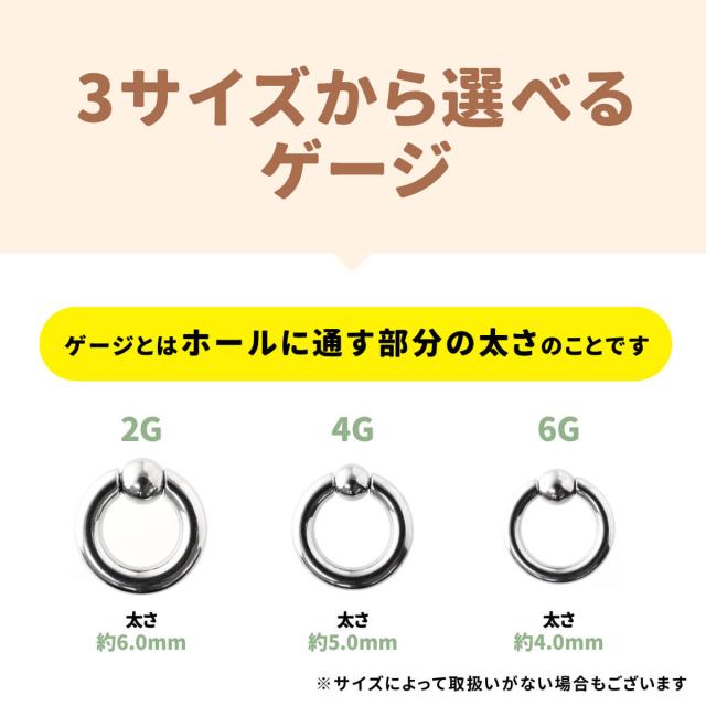 キャプティブビーズリング 2G 4G 6G サージカルステンレス シルバー ピンクゴールド ブラック イヤーロブ ラージイヤーホール