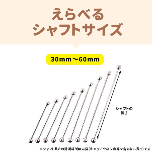 太さ14G,16G シャフト30mm〜60mm ボール2mm〜6mmのインダストリアルバーベルです。
