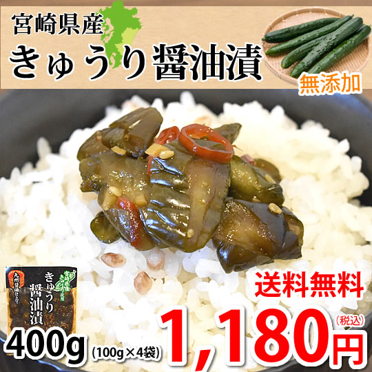 漬物 きゅうり醤油漬 無添加 400g(100g×4袋) 送料無料 九州醤油仕立て ポッキリ お試し 宮崎県産 お取り寄せ きゅうり つけもの