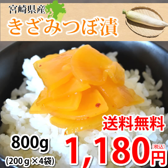 漬物 きざみつぼ漬け 800g(200g×4袋) 送料無料 ポッキリ お試し 宮崎県産 つけもの 大根 たくあん 沢庵