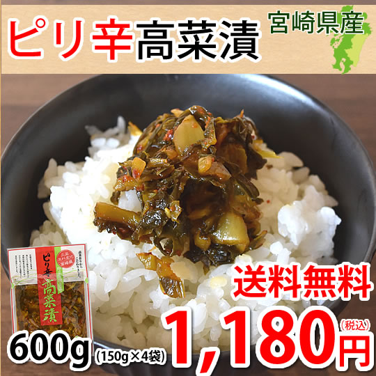 辛子高菜漬 高菜 漬物 600g(150g×4袋) 送料無料 ポッキリ お試し お取り寄せ 宮崎県産 ピリ辛たかな ポイント消化 つけもの