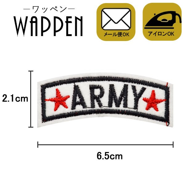 ワッペン 刺繍 アイロン接着 縦2.1cm×横6.5cm ホワイト ARMY 星 スター アイロンワッペン ミリタリー アップリケ母の日 プレゼント ギフト