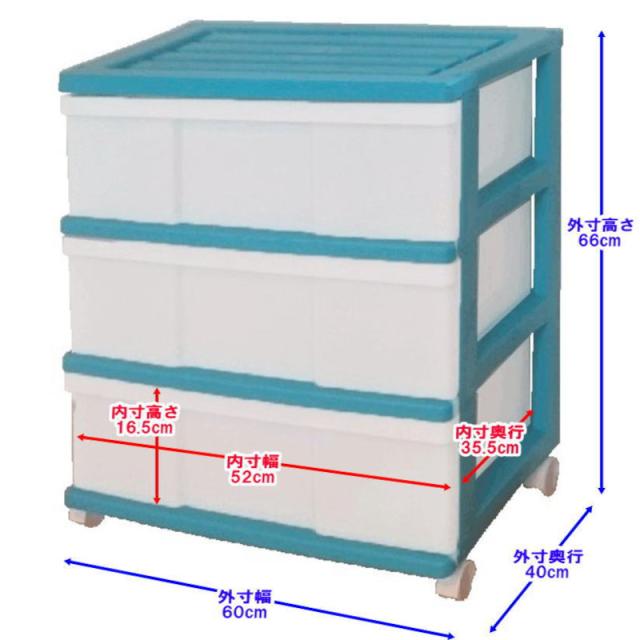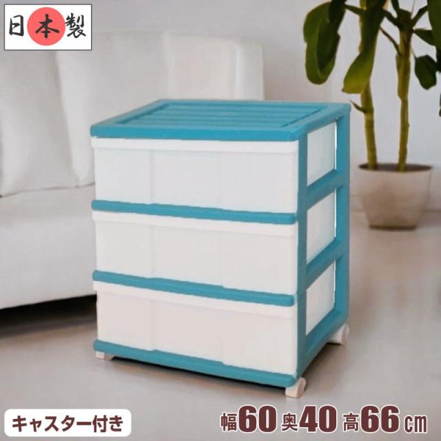 収納ケース 引き出し ワイド チェスト プラスチック 3段 幅60cm おしゃれ ターコイズグリーン 日本製 送料無料