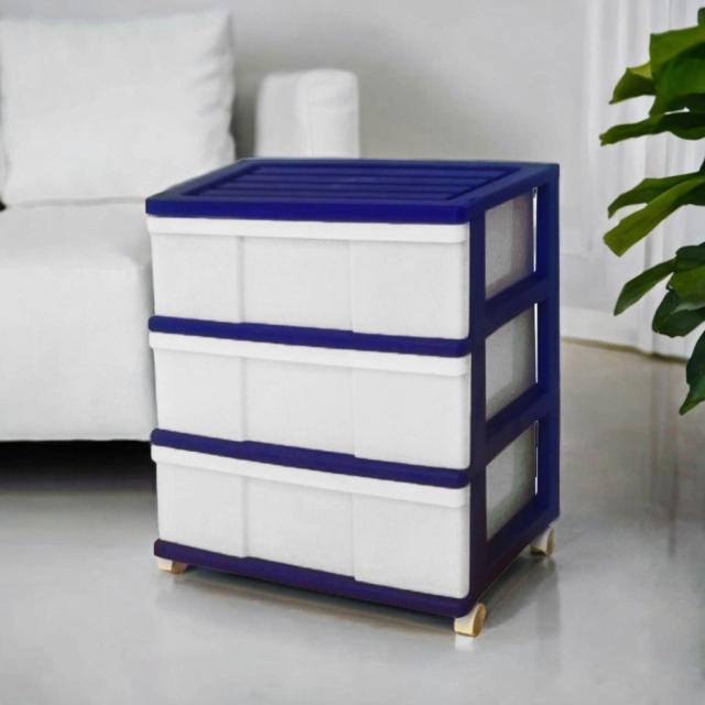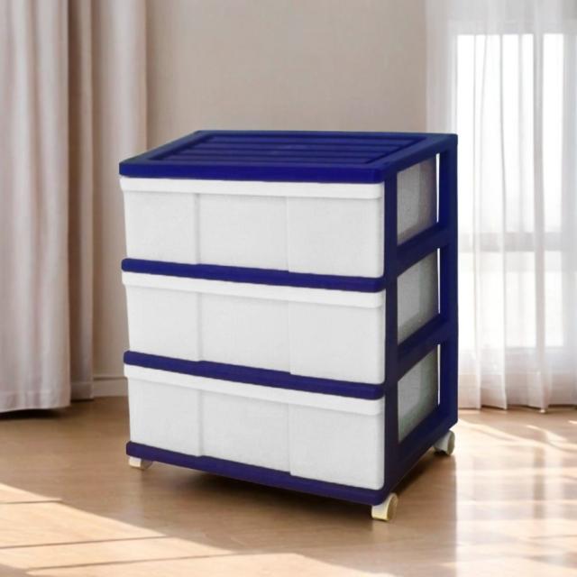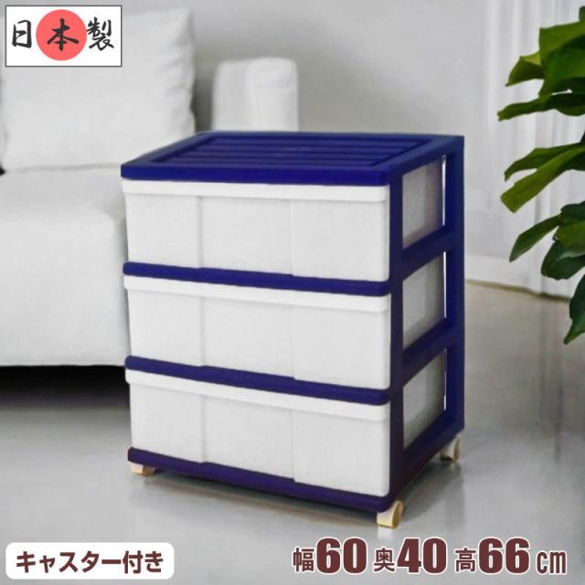 収納ケース 引き出し ワイド チェスト プラスチック 3段 幅60cm おしゃれ ロイヤルブルー 日本製 送料無料