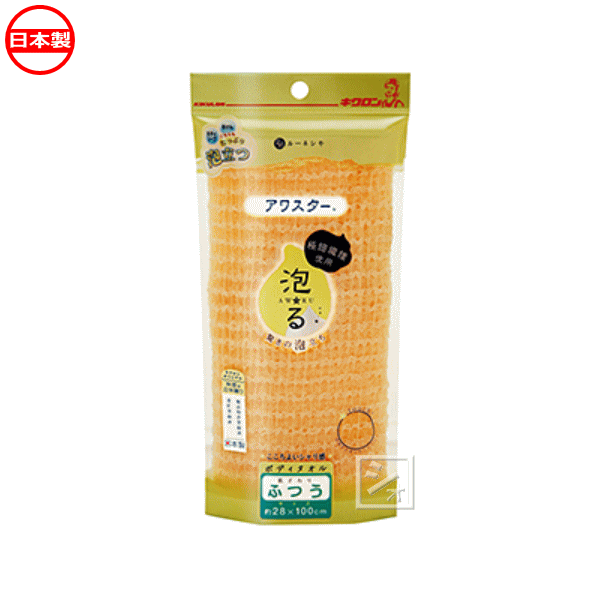 キクロン アワスター ボディタオル ふつう オレンジ 日本製 【メール便送料無料】