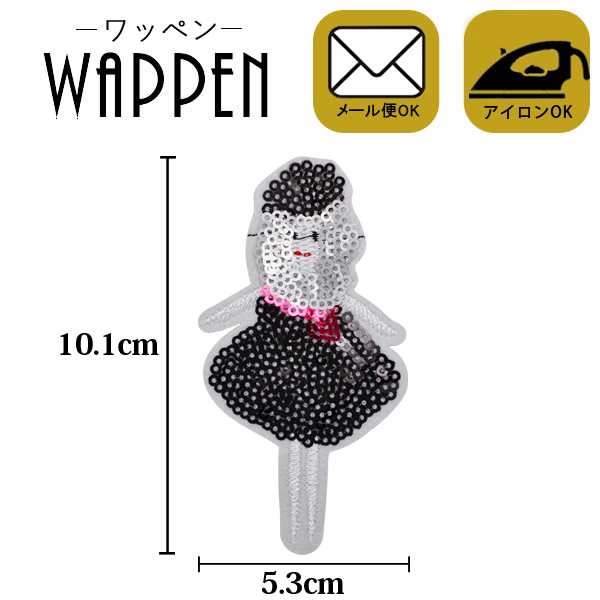 ワッペン アップリケ スパンコールワッペン アイロン接着 手芸 縦10.1cm×横5.3cm ガール 女の子 アイロンワッペン母の日 プレゼント ギフト