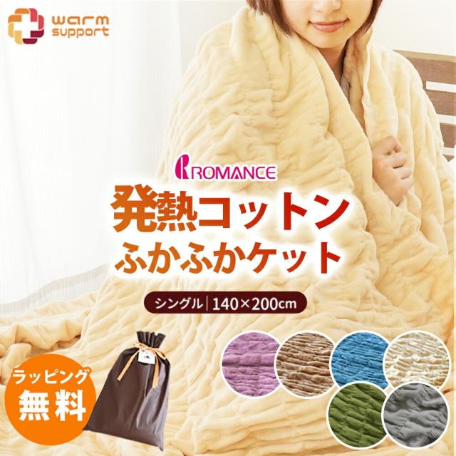 毛布 シングル 日本製 吸湿発熱 綿毛布 ふかふかケット ウォームサポートケット ロマンス小杉 あったか 冬 オールシーズン 発熱 コットンケット 薄手 洗える 綿100% 軽い 暖かい ヒート インナーケット 通年 パイル