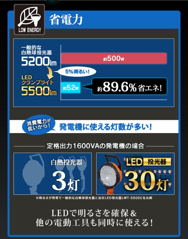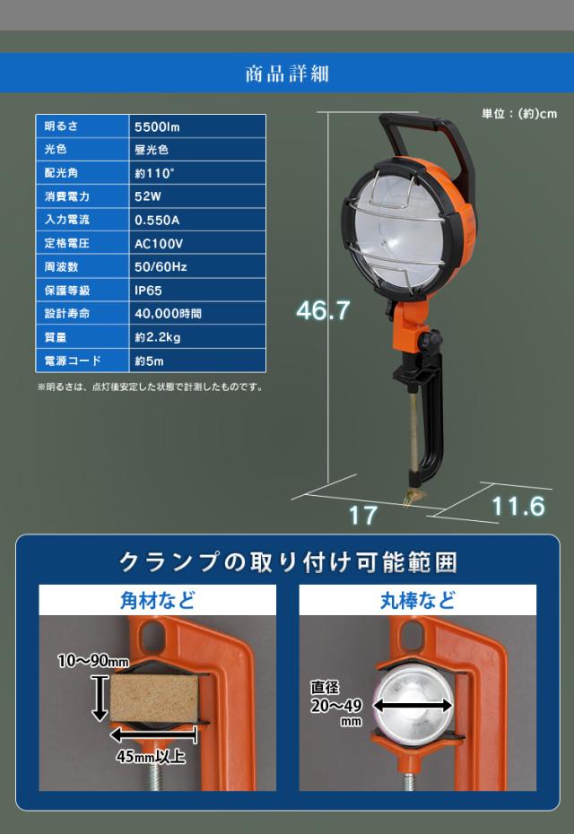 投光器 作業灯 ライト 屋外 LED 明るい 5500lm LWT-5500C アイリスオーヤマ 防水 防塵 防災 業務用 照明 長寿命 クランプライト 作業 工事 工事現場 送料無料