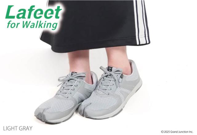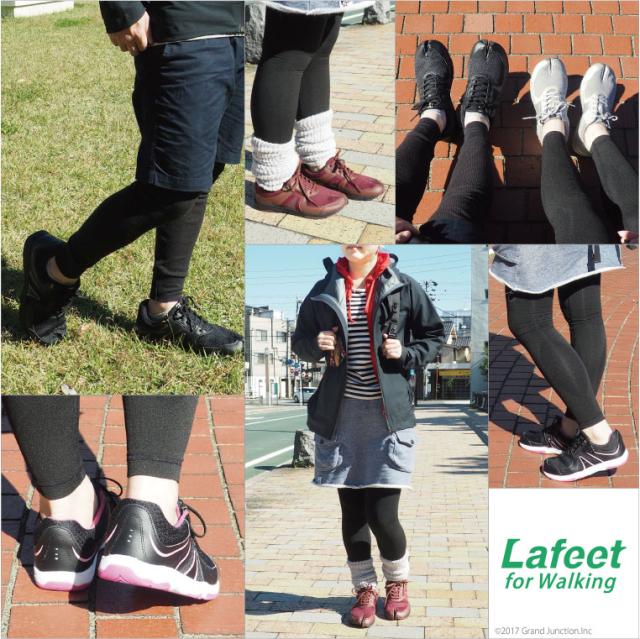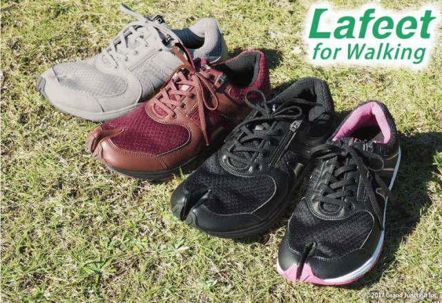 ラフィートは、外反母趾の進行抑制シューズとしても注目されています。 足指に隙間を作る構造により、本来の足の形に合わせた靴の着用ができるため、拇趾(親指)の外反が抑制される効果に期待できます。 外反母趾が治るわけではありませんが、痛みを軽減や安定した歩行、進行抑制に期待できるので、軽度や中等度の外反母趾がありながらもウォーキングを楽しみたいという方には非常に適した靴だとお勧めできます。