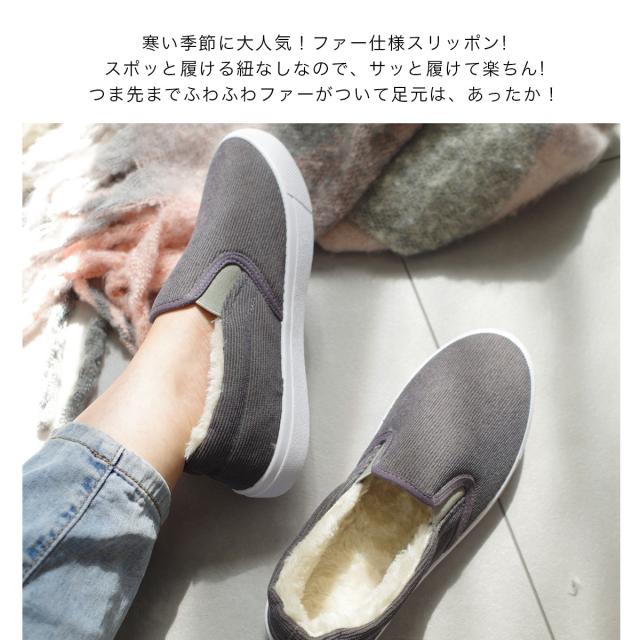 つま先まであったかファー! スリッポンシューズ ボア スニーカー スリッポン シューズ レディース靴 歩きやすい 履きやすい 楽ちん フラット ぺたんこ 22.5 27.0 散歩 秋新作 送料無料 FKL024 アミアミ あみあみ amiami