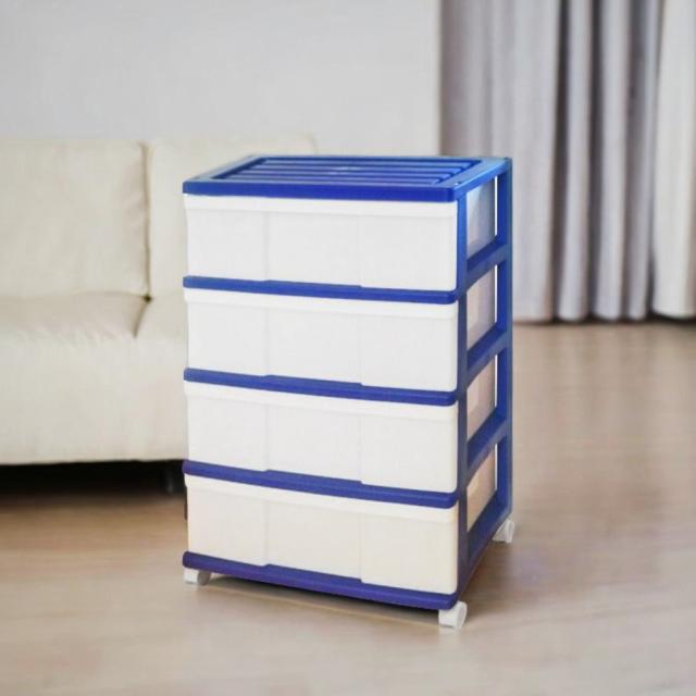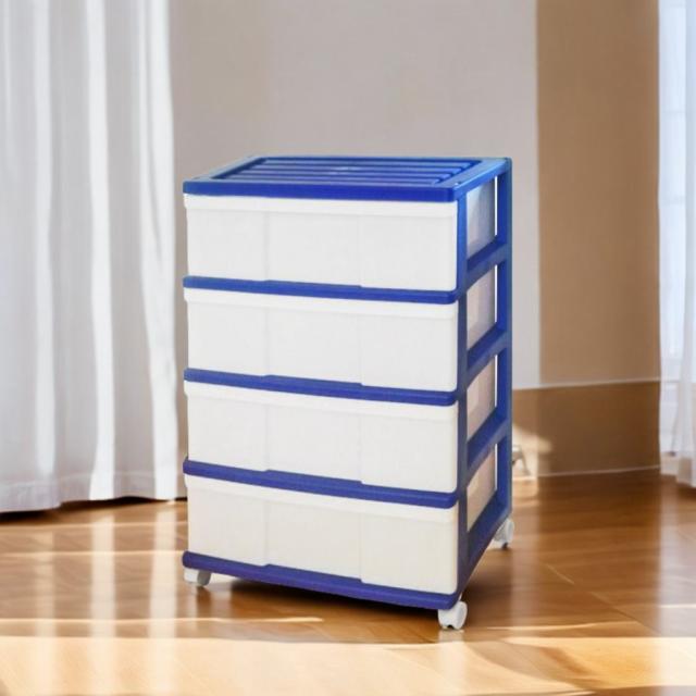 収納ボックス 収納ケース 衣類 押入れ 引き出し ワイド チェスト プラスチック 4段 幅60cm おしゃれ ロイヤルブルー 日本製 送料無料