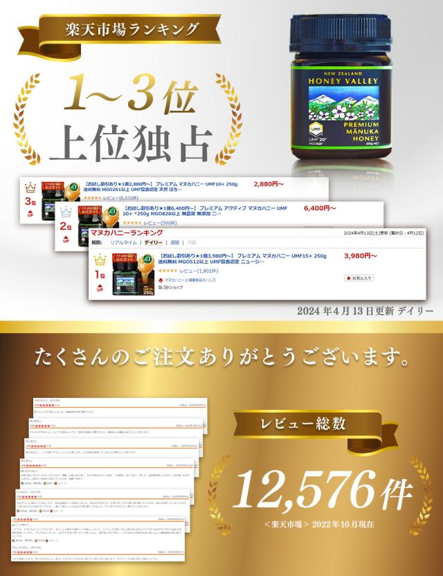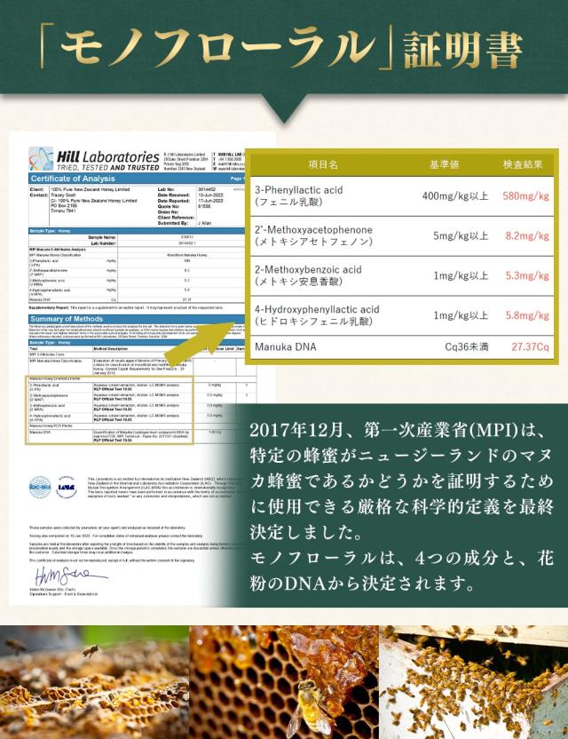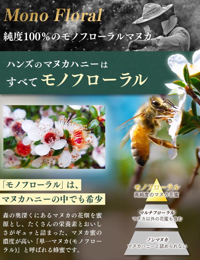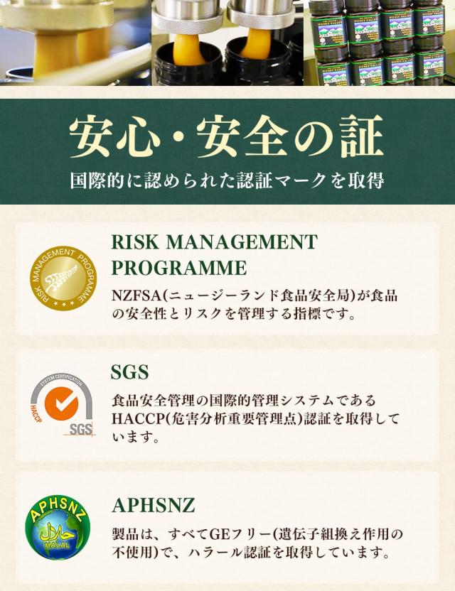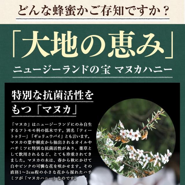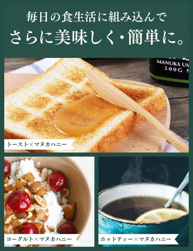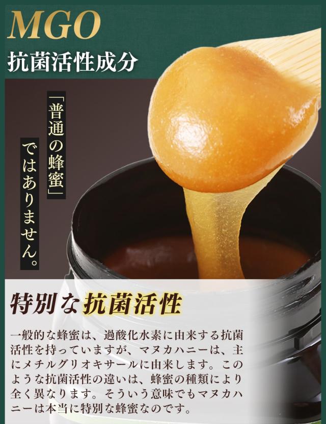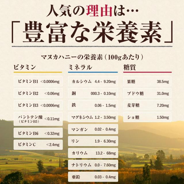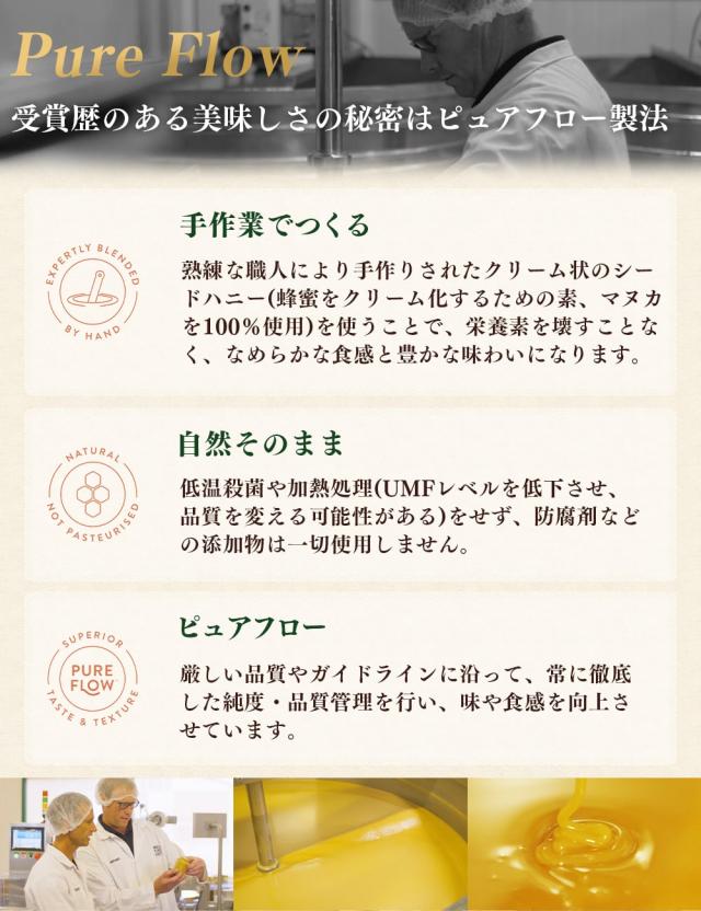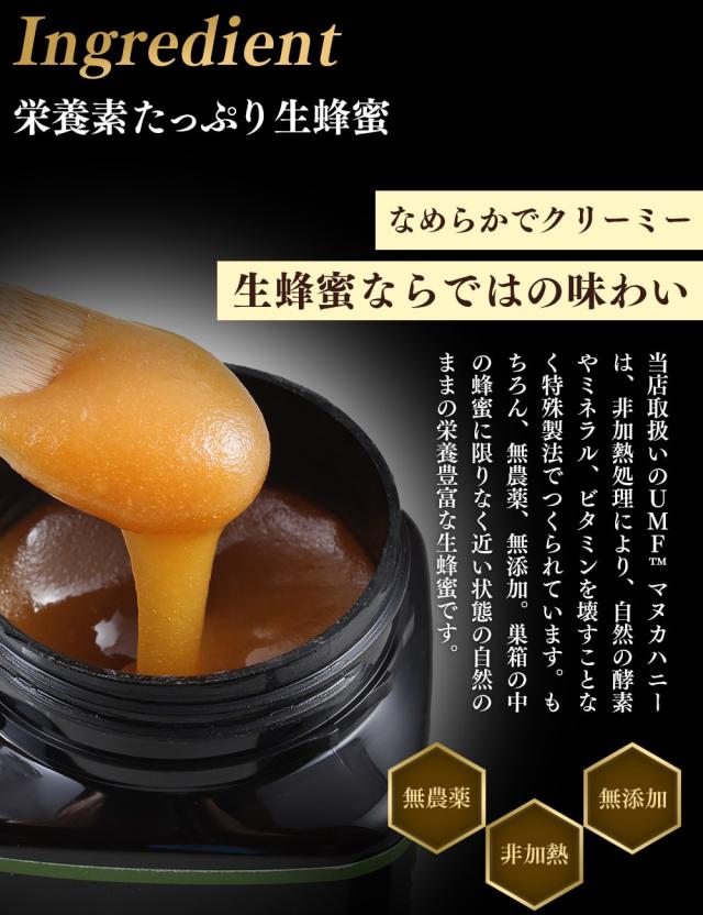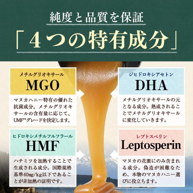 ・安全・安全の純度が高いマヌカハニーは濃密で贅沢な甘さを持ち、滑らかな食感が自然な風味の美味しさを味わいます。