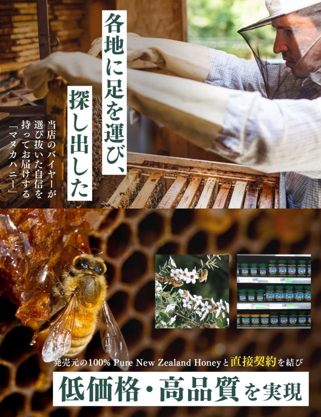 ・熟練な職人により手作りされた純度が高いマヌカハニーでは防腐剤や添加物は一切不使用、非加熱の生産、配送で栄養素を壊すことがありません。健康維持を心掛ている方に是非お召し上がりいただきたい健康食品です。