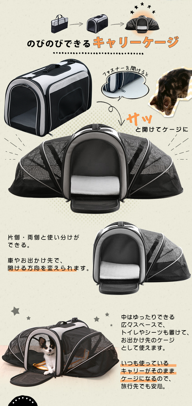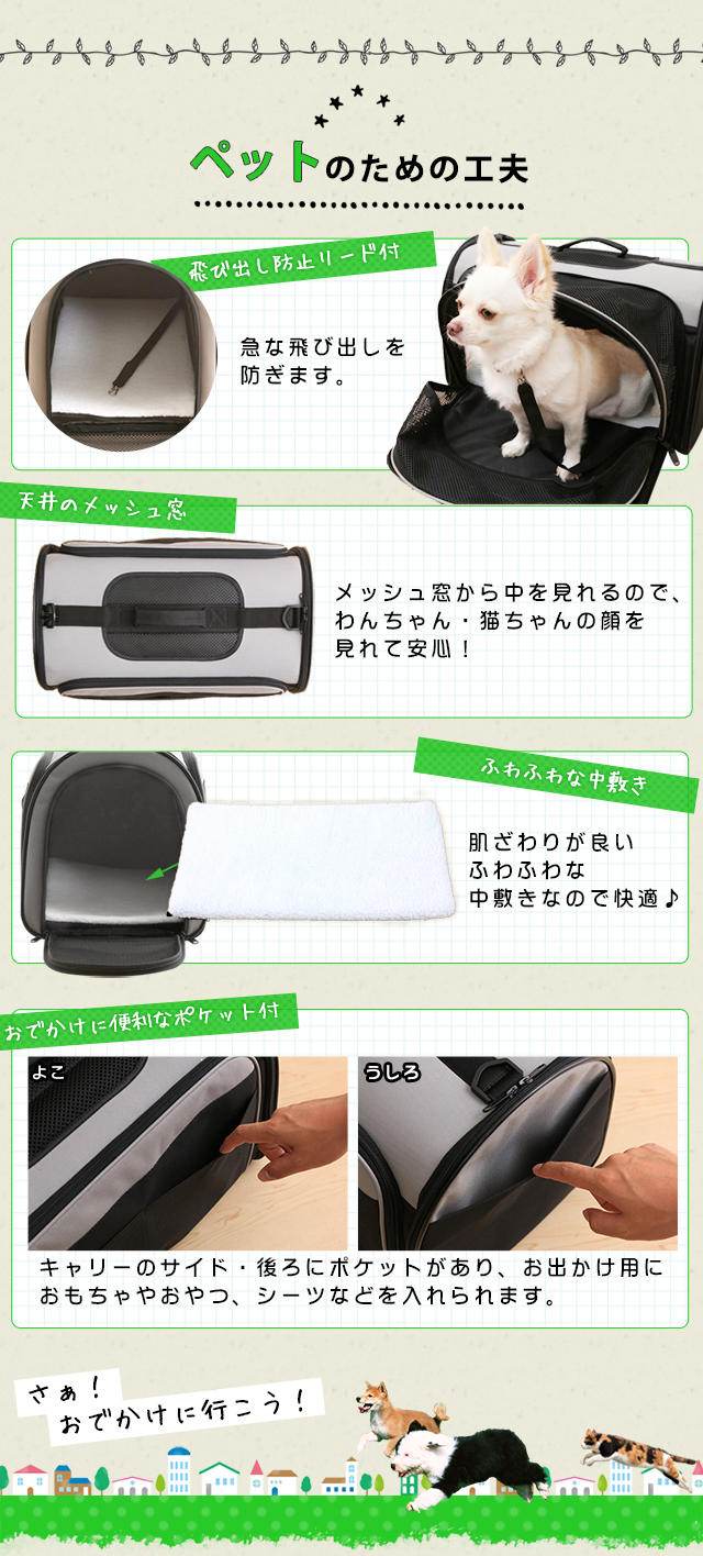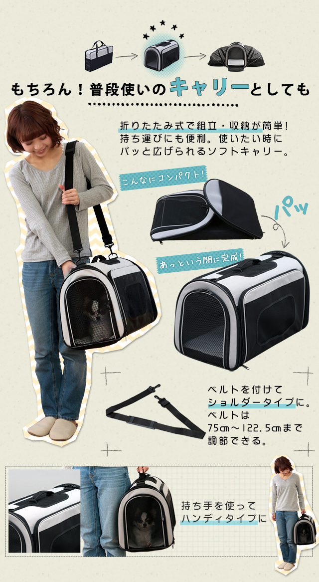2WAYアウトドアペットキャリー 散歩 お散歩 ペット シンプルデザイン キャリー ペット 犬 猫 お出かけ ケージ おうち PC-S004 L 送料無料