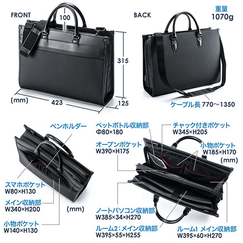 ●ダブルルーム仕様の耐水ビジネスバッグです。●カーボンPUコーティングを施した生地が雨や汚れを弾きます。