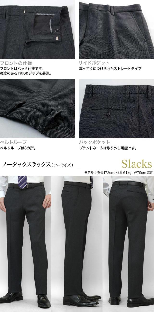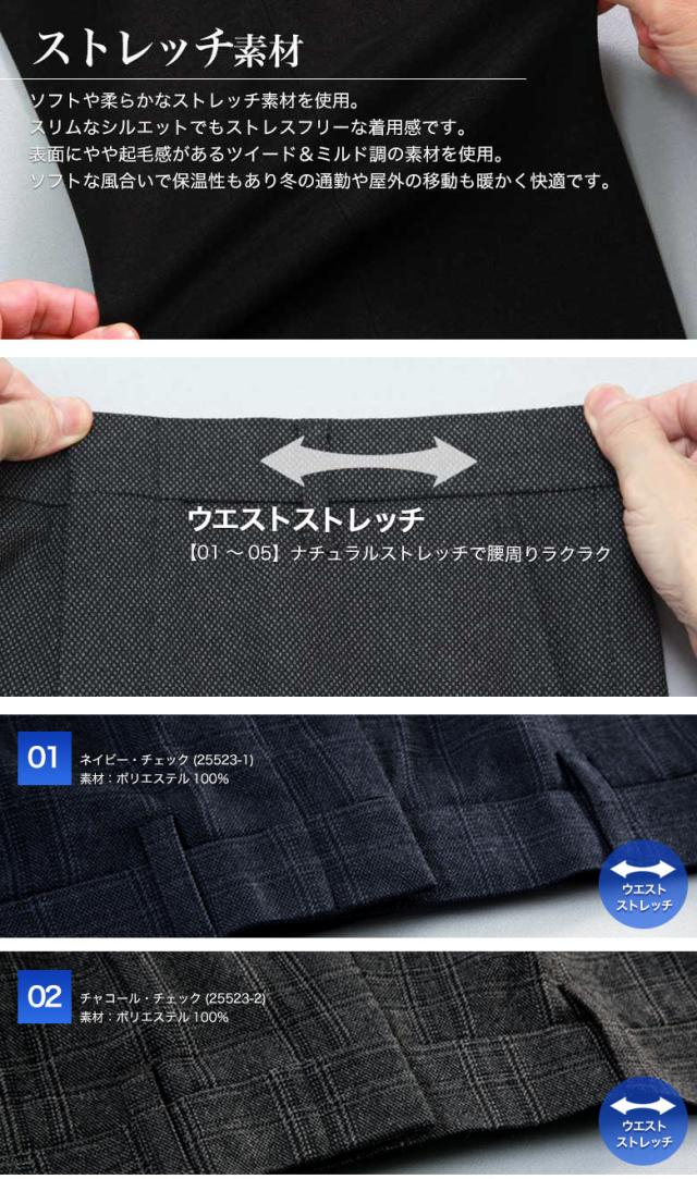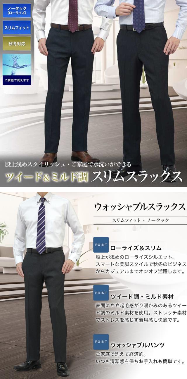 | 秋冬物ストレッチ・ミルド素材ノータックスリムスラックス 股上が浅めのローライズシルエットスマートな美脚スタイル。 素材は表面にやや起毛感がり暖かみのあるツイード調のミルド素材を使用。 ストレッチ素材でストレスを感じず着用感も快適です。 ウォッシャブル仕様で家庭で洗えて経済的、いつも清潔感を保ちお手入れも簡単です。 ソフトな風合いで保温性もあり冬の通勤や屋外の移動も暖かく 秋冬のビジネスからカジュアルまでオンオフ活躍します。 |