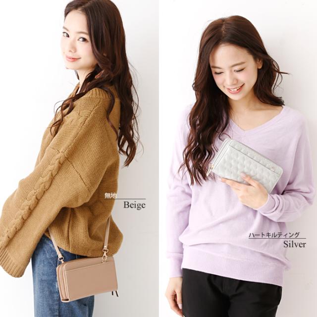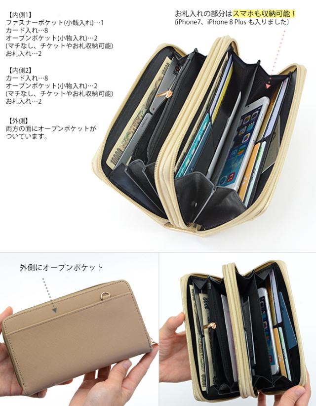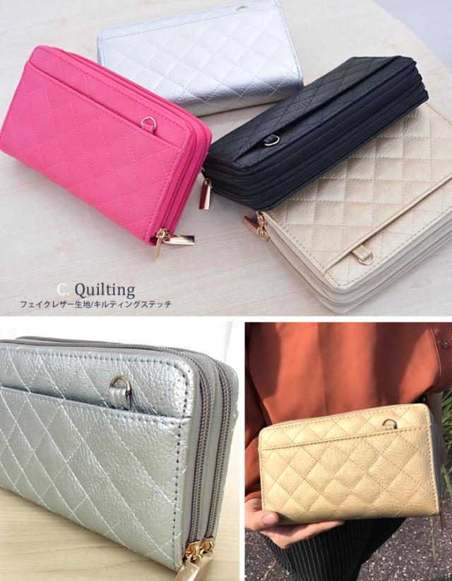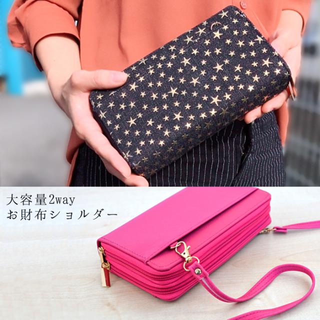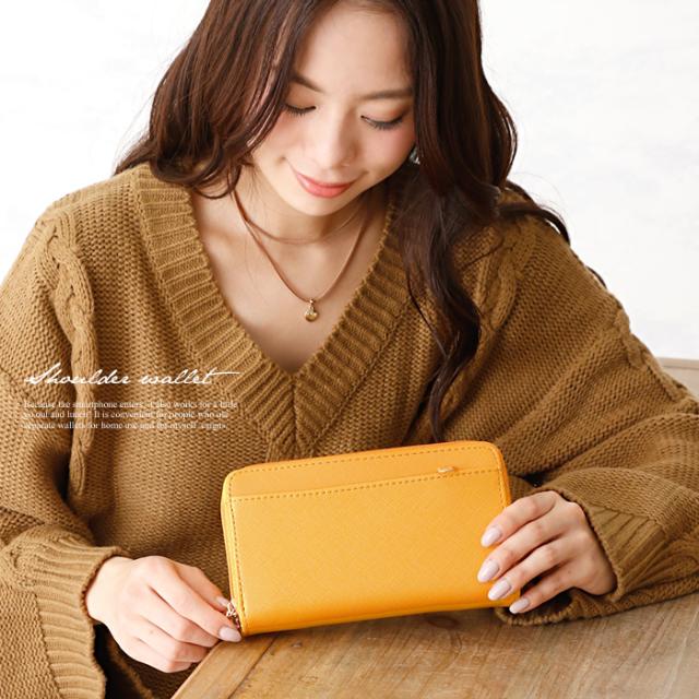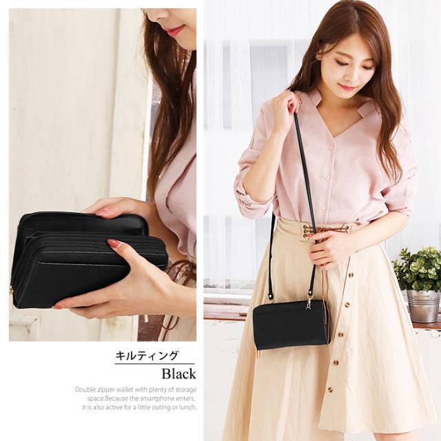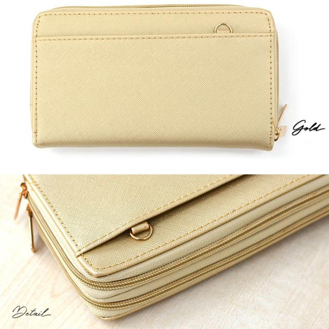 お財布ポシェット スマホ ショルダー 大きめ 大容量 2way ダブルファスナー (ar-WPOm) [宅配B]【送料無料】 春物 春夏 女性 Wファスナー 財布 レディース 長財布 ショルダーバッグ 斜めがけ 無地 かわいい プレゼント ギフト 女性 春財布 agesugi_sfa