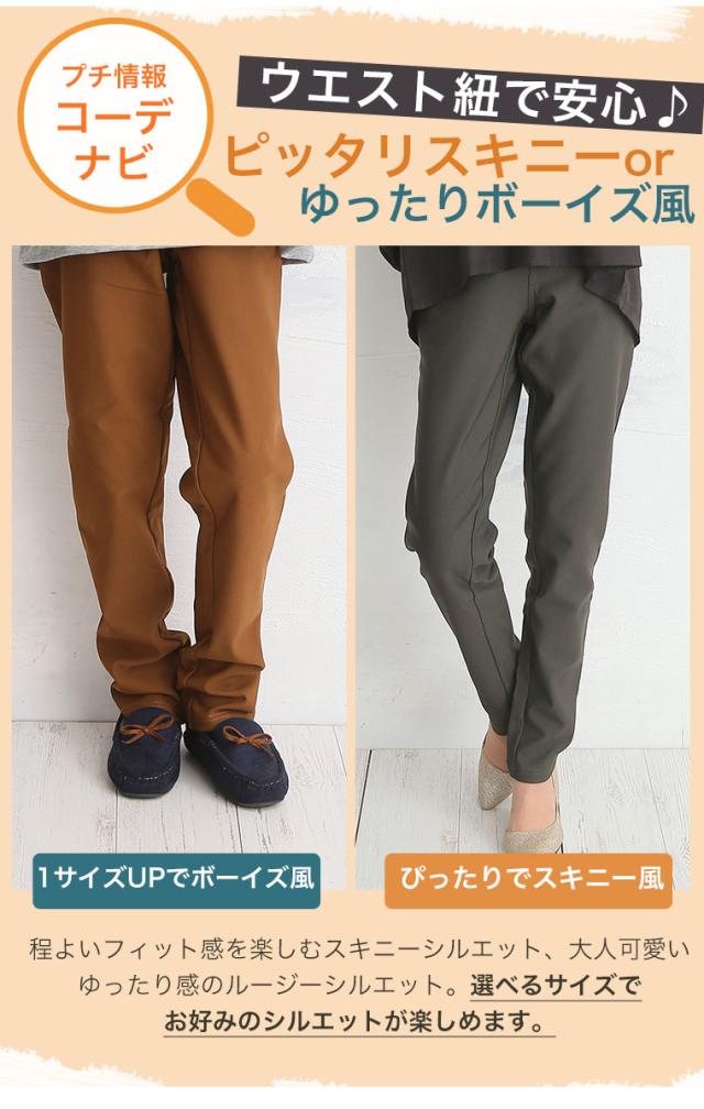 全体的に程よいゆとりを持って着用できました。M-LL(タグ1)サイズ着用で、ウエスト、ヒップに程よいフィット感のある、スッキリしたシルエットで着れました。脚周りは程よくゆとりがあるので、楽ちんな履き心地です。裏起毛でとっても温かいですよ♪