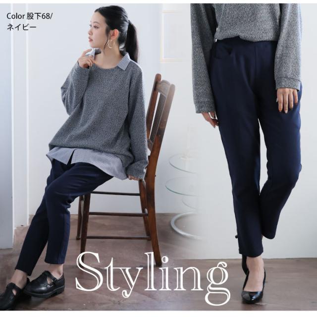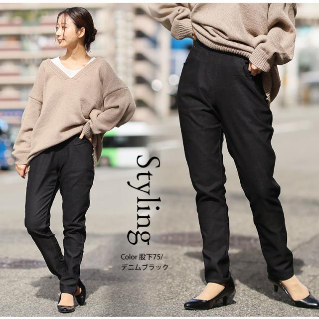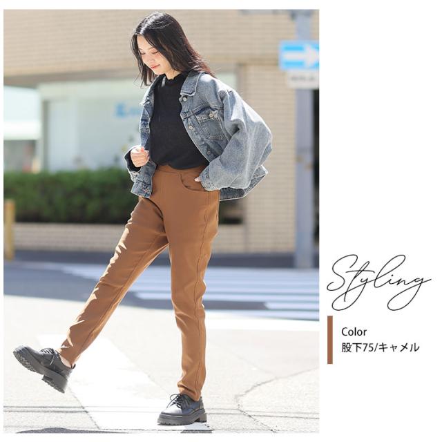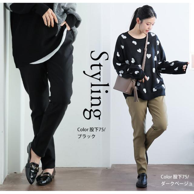 シンプルなデザインでレギンス感覚で使えるのに美脚シルエットが魅力の1本大きいサイズ専門店が作る裏起毛ストレッチパンツ