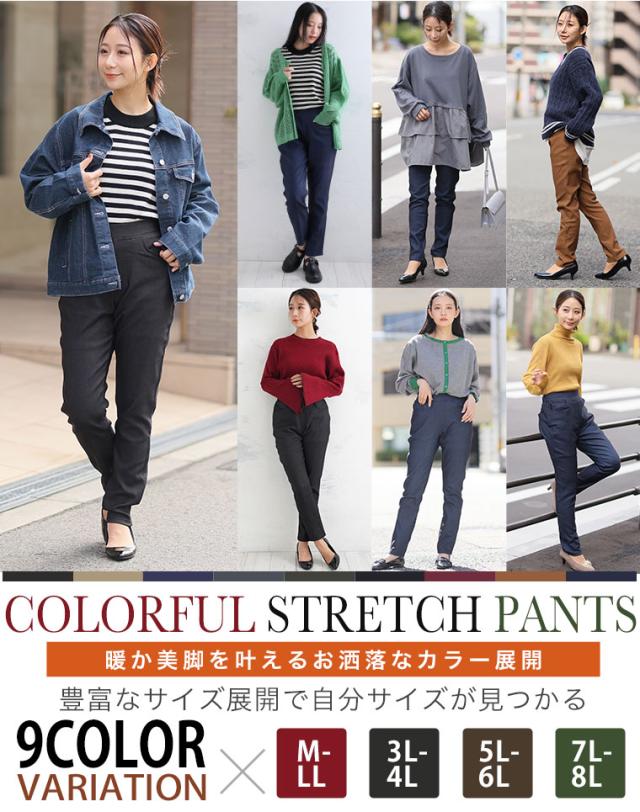 秋新作 新作 大きいサイズ レディース パンツ | 新色追加!! 裏起毛 ストレッチ ウエストゴム 楽暖 美脚 レギパン [431291] LL 3L 4L 5L 6L 7L 8L