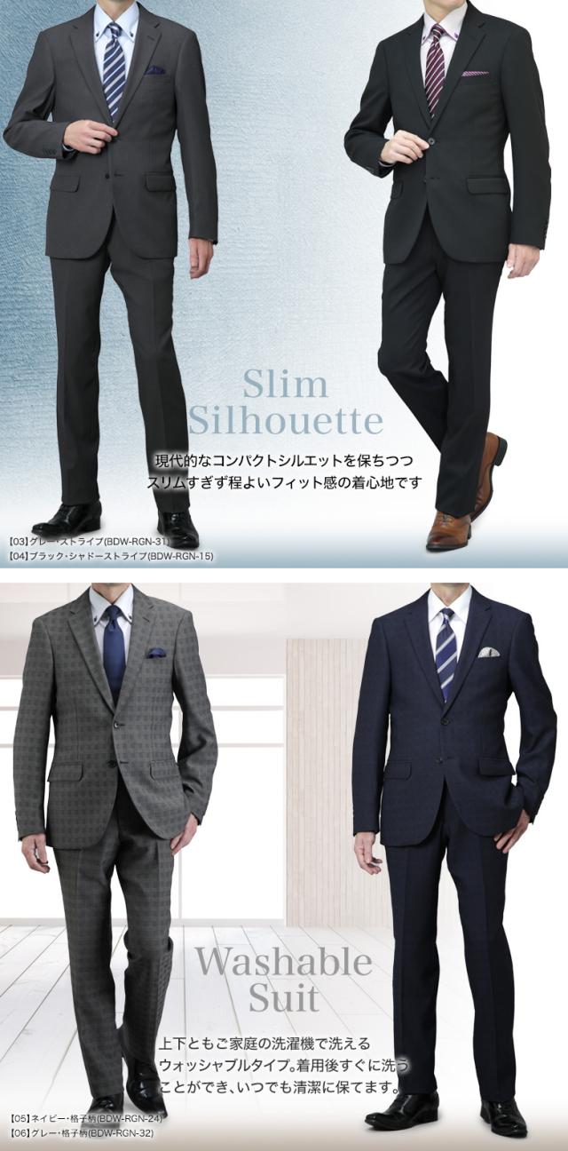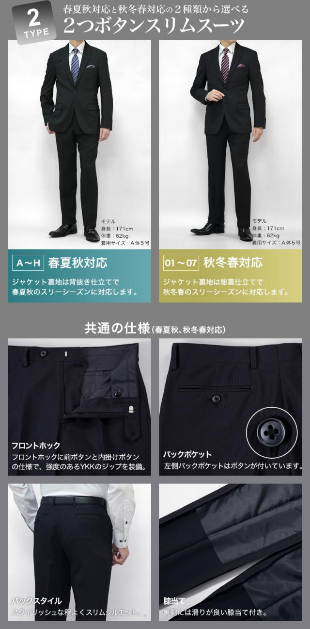 【春夏秋・秋冬春対応】上下洗える 2つボタンスーツ(程よくスリム)