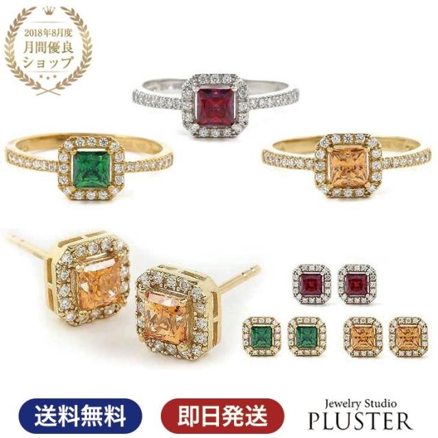 指輪 リング ピアス セット レディース キュービック カラー ルビー エメラルド シトリン 9号 11号 13号 キュービックジルコニア 金属アレルギー シンプル 彼女 ギフト 人気 ジュエリー アクセサリー 送料無料 誕生日 クリスマス プレゼント 女性 アクセサリー