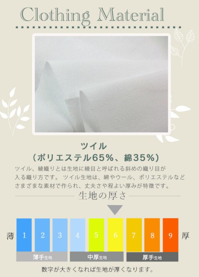ツイル:ポリエステル65%、綿35%