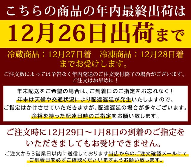 - 初めから、発送届けまで、本当にマメに連絡メール頂き、すごく安定した素晴らしいお店でした。これからも取り寄せたいと思っております。有難うございました。家族みんな、美味しいと大喜びでした。