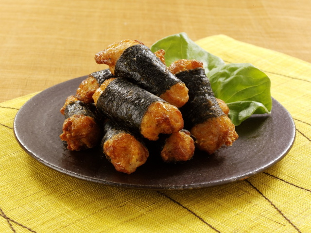 新鮮な若鶏もも肉スティック状にカットし、のりで巻いて仕上げた商品です。お弁当にもおつまみにもぴったりです。