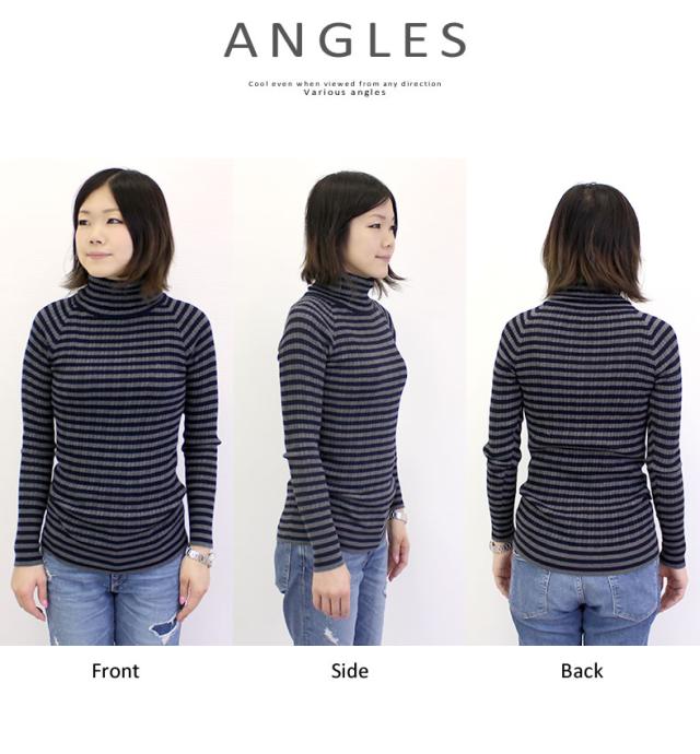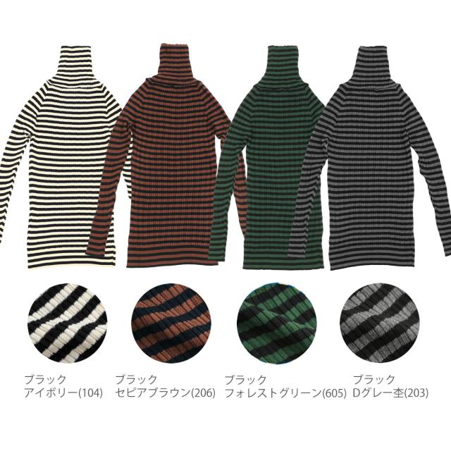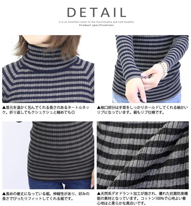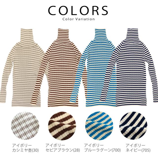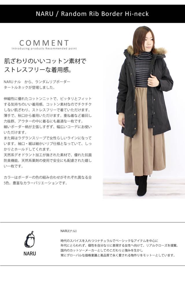 ニット ナル NARU ランダムリブボーダー タートルネック 長袖 ハイネックコンパクトニット 611703 ボトルネック セーター コットン 綿100%トップス レディース セーター カットソー 南出メリヤス おしゃれ アーベン 普段使い 実用的